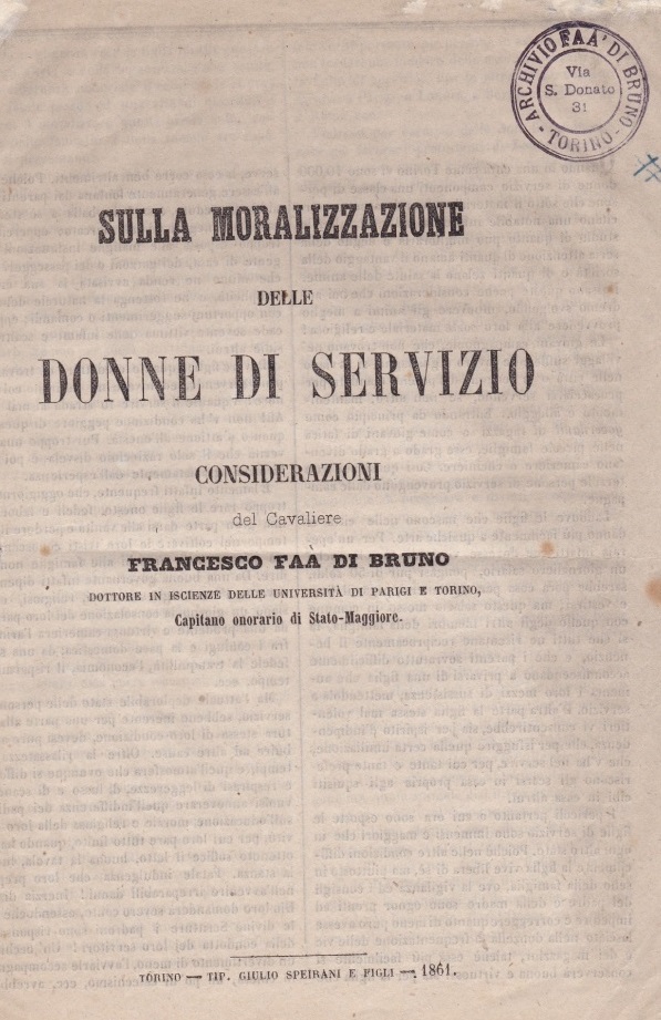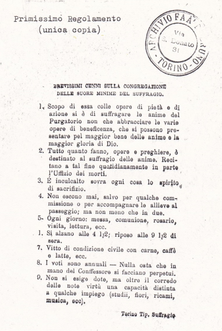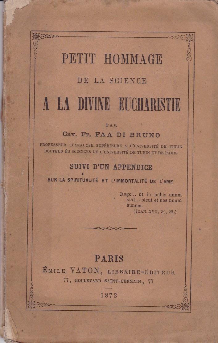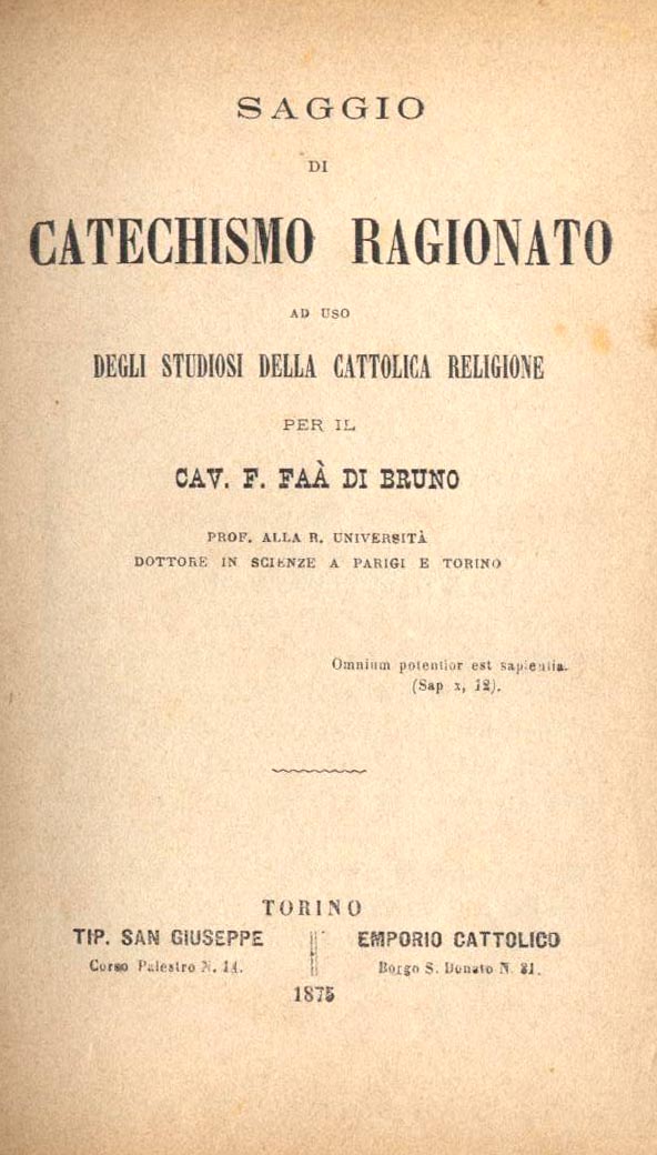 (Cfr. Palazzini: Francesco Faà di Bruno, Scienziato e prete, pag. 465- 468 vol. II)
