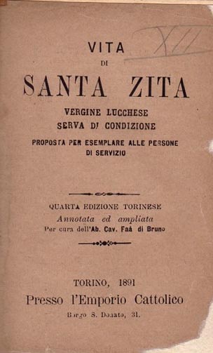 17 - Vita di Santa Zita (Pensieri) annotata ed ampliata per cura del Ab. Cav. Faà di Bruno (estratti alcuni pensieri) (Ar E IV 16)